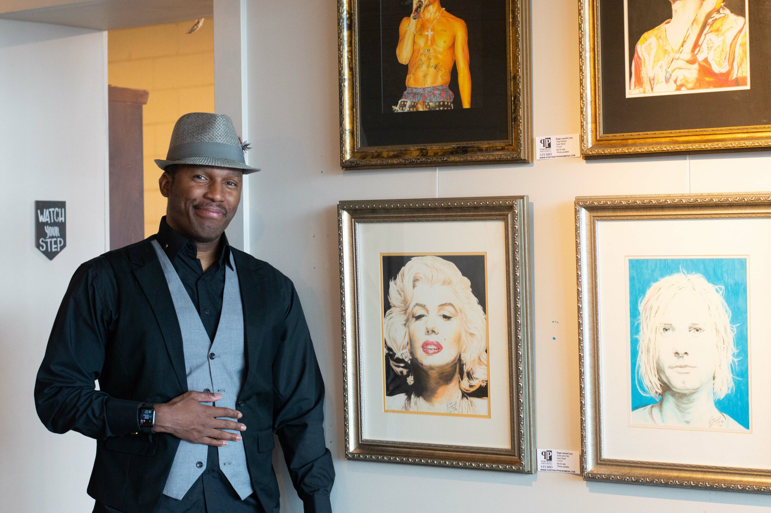 Roger began drawing as a child and was recognized in school for his artistic abilities. He developed a love and skill for dance in middle school, and since then, has used choreography and portraiture in his life as creative outlets. However, despite his years of artistic skill, Roger’s first exhibit made him realize that he still had a lot to learn about the art world.