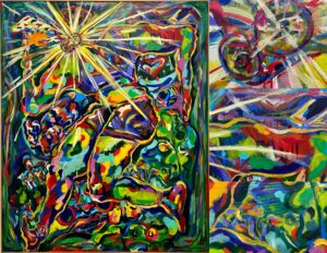 Green has since had their work displayed at Cups in Fondren. Their work “Looking Forward to It,” an acrylic and oil pastel on canvas, garnered a huge positive response on social media, and represented a revitalization of the artist’s vision and confidence.