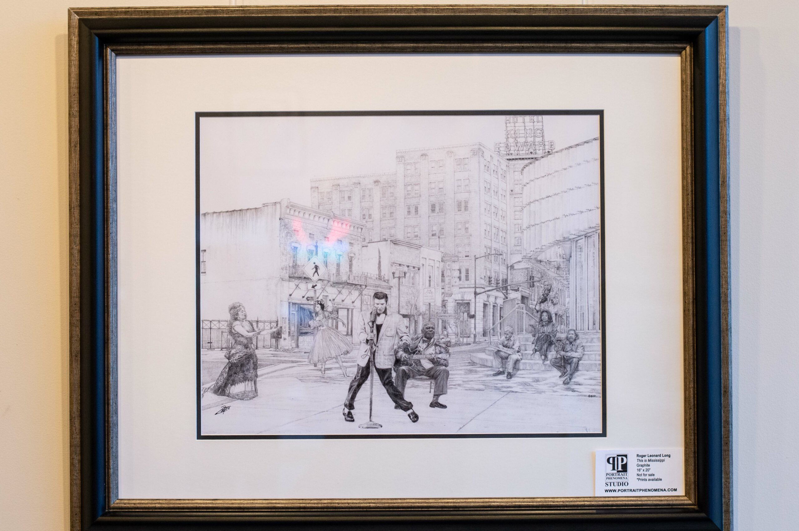 Roger’s latest exhibit is ongoing at Cups Fondren and features pieces, like a photorealistic portrait of Tupac, that were displayed during Roger’s first Cups exhibit all those years ago. Other pieces, like “This is Mississippi”, are more recent and display Roger’s growth as an artist.